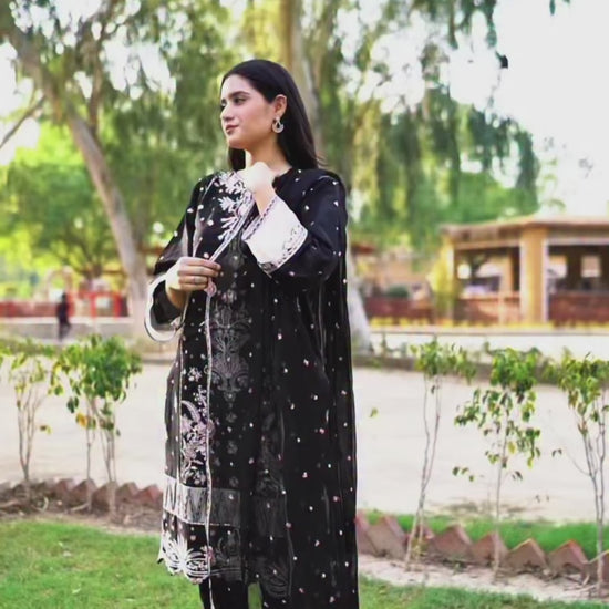 3-Piece Luxury Embroidered Lawn Suit – Black